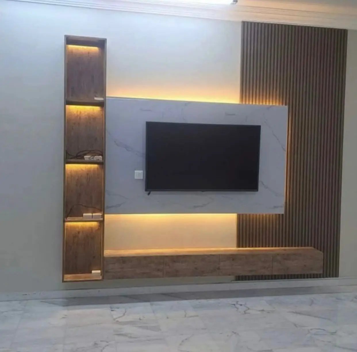 بديل الخشب عندنا مو مجرد لوح تجميلي، بل نظام ديكور متكامل يمنح الجدار مظهر دافئ وفخم، ويزيد من فخامة المكان سواء في الفلل أو المكاتب أو المجالس أو واجهات المباني. نستخدم خامات أصلية مقاومة للماء والحرارة، سهلة التنظيف، وتدوم لسنوات طويلة بدون بهتان أو تشققات.