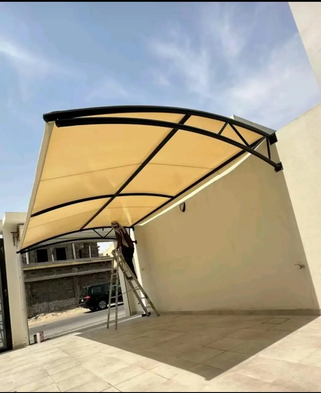 في مؤسسة هناجر مظلات المملكة نحرص أن تكون المظلة جزء من جمال المكان، مو مجرد وسيلة حماية للسيارة. كل تصميم نشتغل عليه يُنفذ بعناية ليتناسب مع واجهة البيت أو المبنى، ومع الألوان المحيطة بطريقة أنيقة واحترافية.