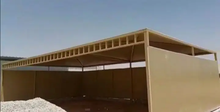 مظلات سيارات هرمية، مظلات قماش PVC، مظلات بولي كربونيت، مظلات شد إنشائي، ومظلات متحركة.